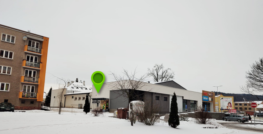 po levé straně od vchodu do obchodu Konzum Hostovského 660