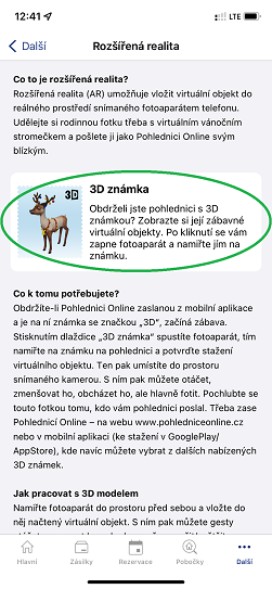 - vyzkoušejte zábavné 3D objekty, které pomocí mobilní aplikace Pošta Online přenesete do reálného prostředí