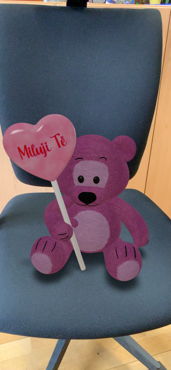 Objekt pak načtete telefonem přes mobilní aplikaci Pošta Online a umístíte do reálného prostředí. V aplikaci se vám otevře automaticky foťák a objekt uvidíte přes mobil zobrazený v prostoru před vámi. Tlačítkem fotoaparátu s ním můžete kohokoliv vyfotit.