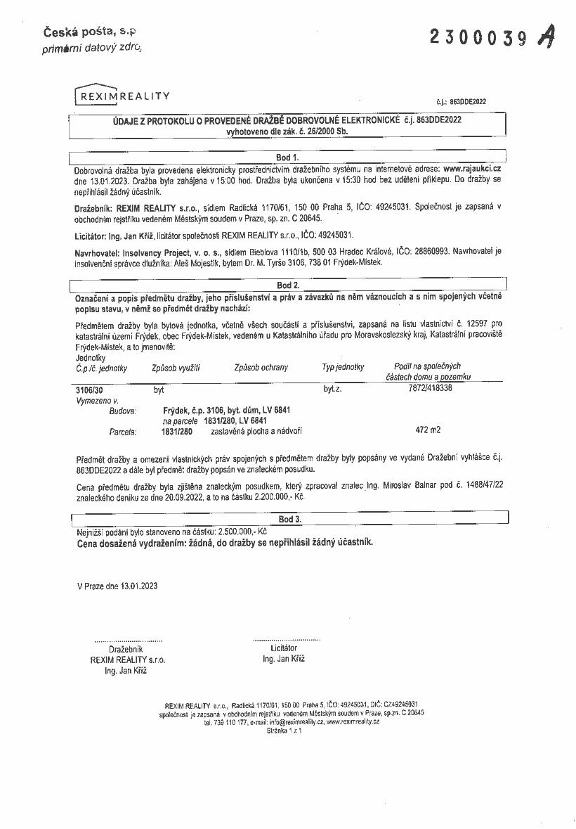 www.centralniadresa.cz – 14.12.2025 09:49 – announcement number 10967270DP01