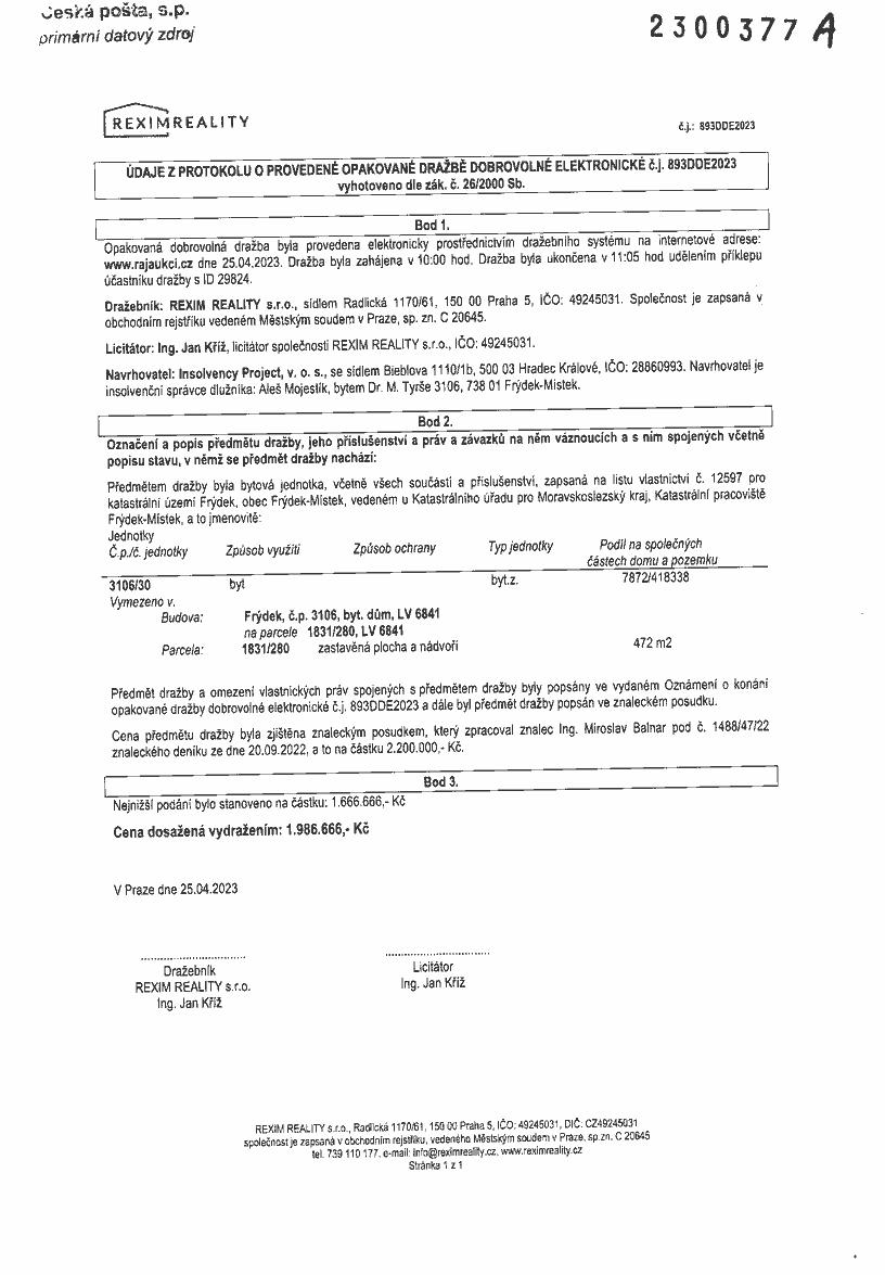 www.centralniadresa.cz – 14.12.2025 09:48 – announcement number 10967270DP02