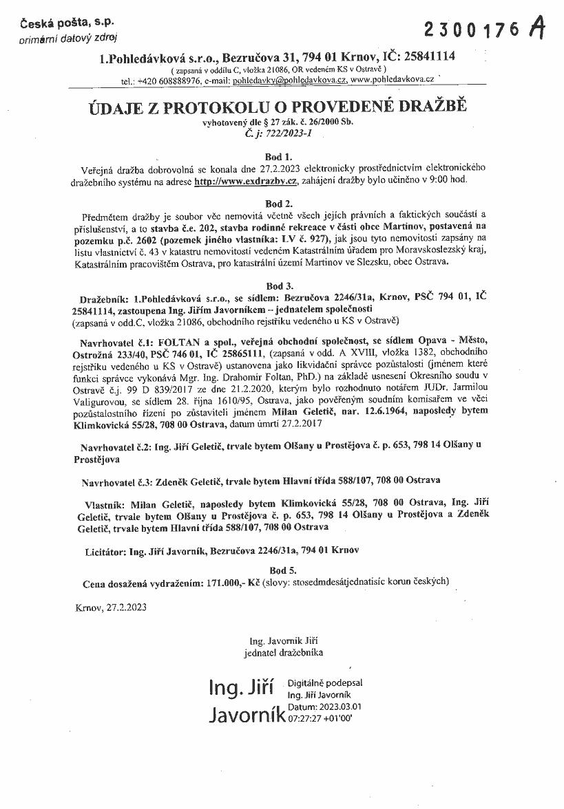 www.centralniadresa.cz – 10.12.2025 04:12 – announcement number 10967364DP01