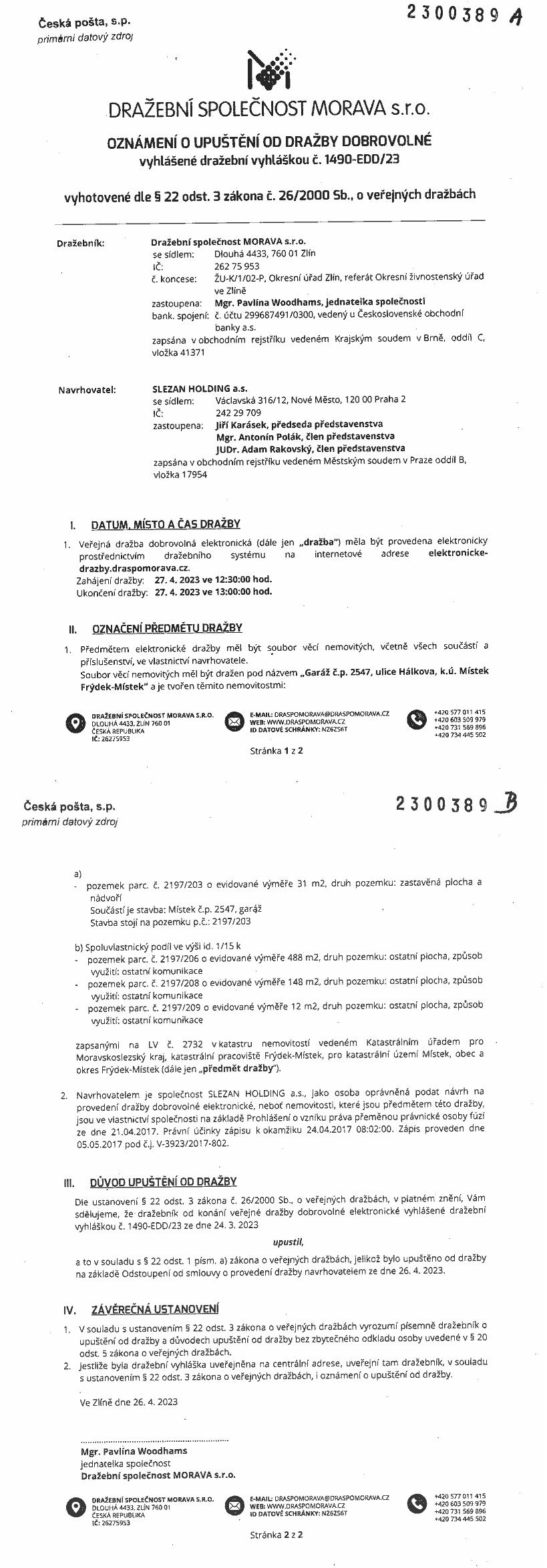www.centralniadresa.cz – 13.12.2025 08:14 – announcement number 10967508DU01