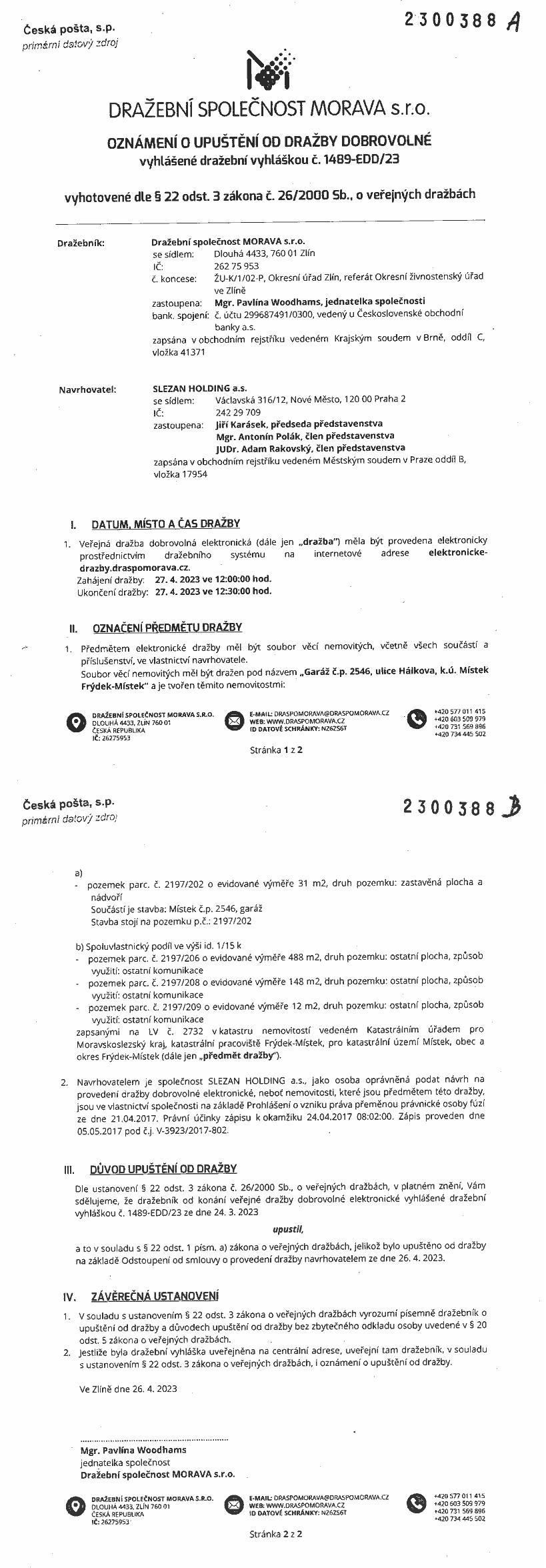 www.centralniadresa.cz – 13.12.2025 08:14 – announcement number 10967511DU01