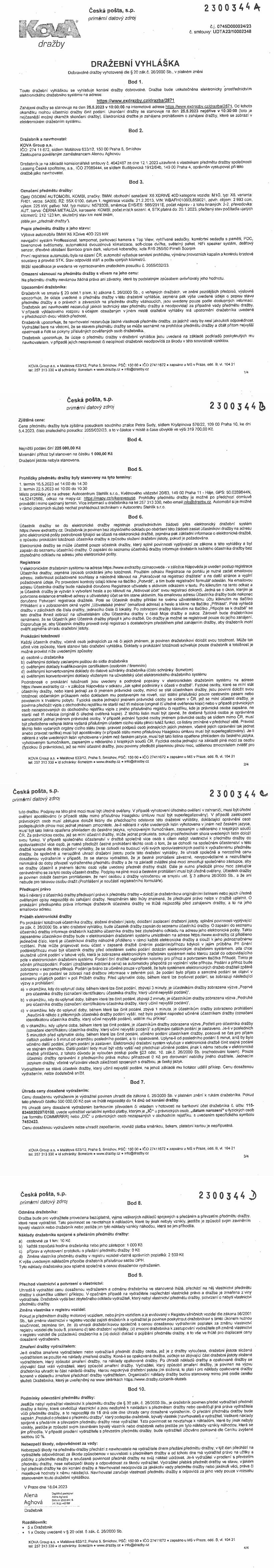Uveřejněná data na centrální adrese jsou určena pouze pro účely vlastní realizace veřejných dražeb, veřejných nabídek a ostatních veřejných zakázek dle platné legislativy.