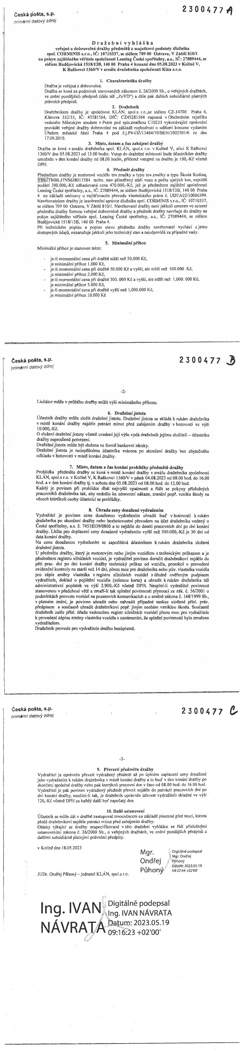 Uveřejněná data na centrální adrese jsou určena pouze pro účely vlastní realizace veřejných dražeb, veřejných nabídek a ostatních veřejných zakázek dle platné legislativy.
