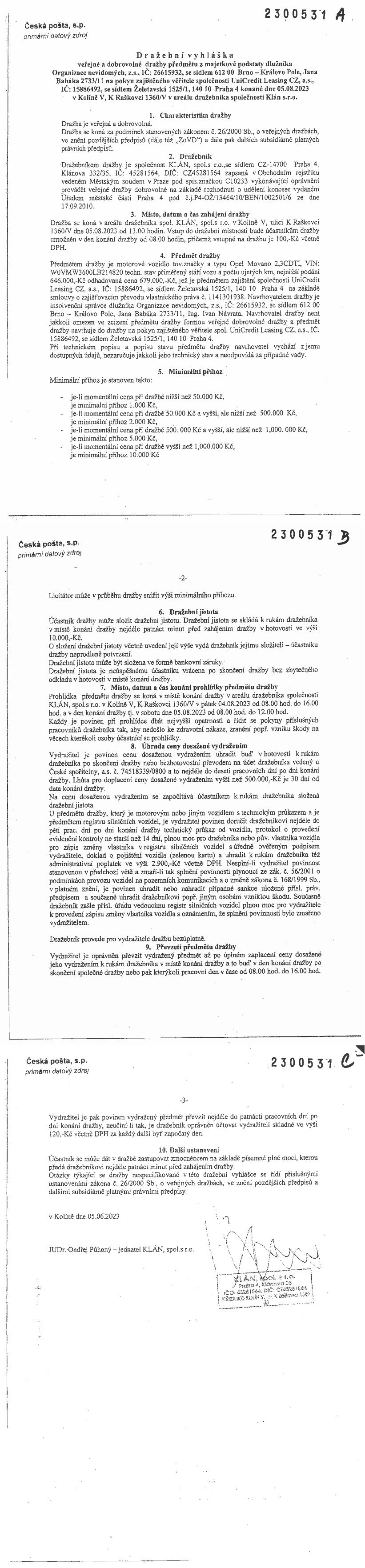 www.centralniadresa.cz – 13.12.2025 07:20 – announcement number 10967716DV01