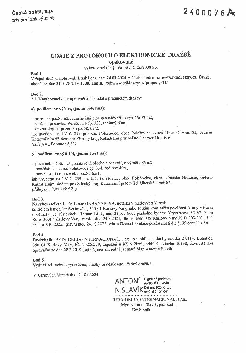 Uveřejněná data na centrální adrese jsou určena pouze pro účely vlastní realizace veřejných dražeb, veřejných nabídek a ostatních veřejných zakázek dle platné legislativy.