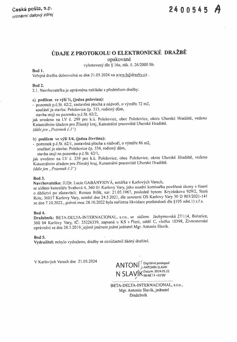 Uveřejněná data na centrální adrese jsou určena pouze pro účely vlastní realizace veřejných dražeb, veřejných nabídek a ostatních veřejných zakázek dle platné legislativy.