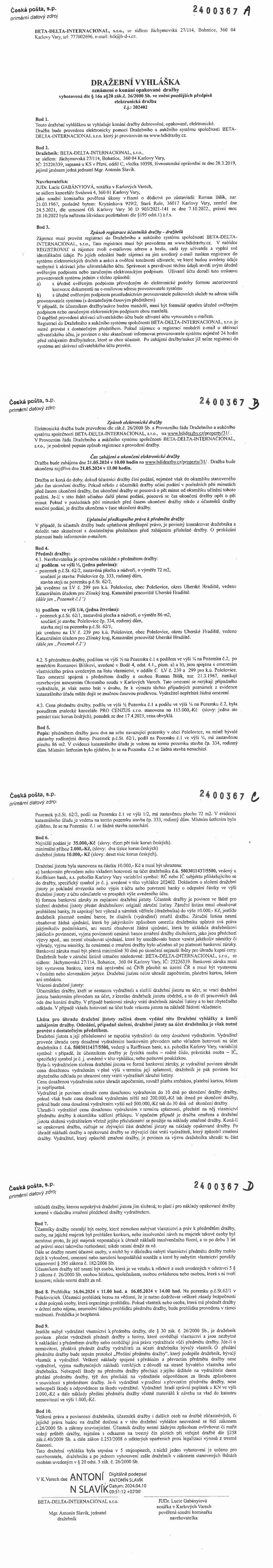 www.centralniadresa.cz – 15.12.2025 10:25 – announcement number 10967781OD02