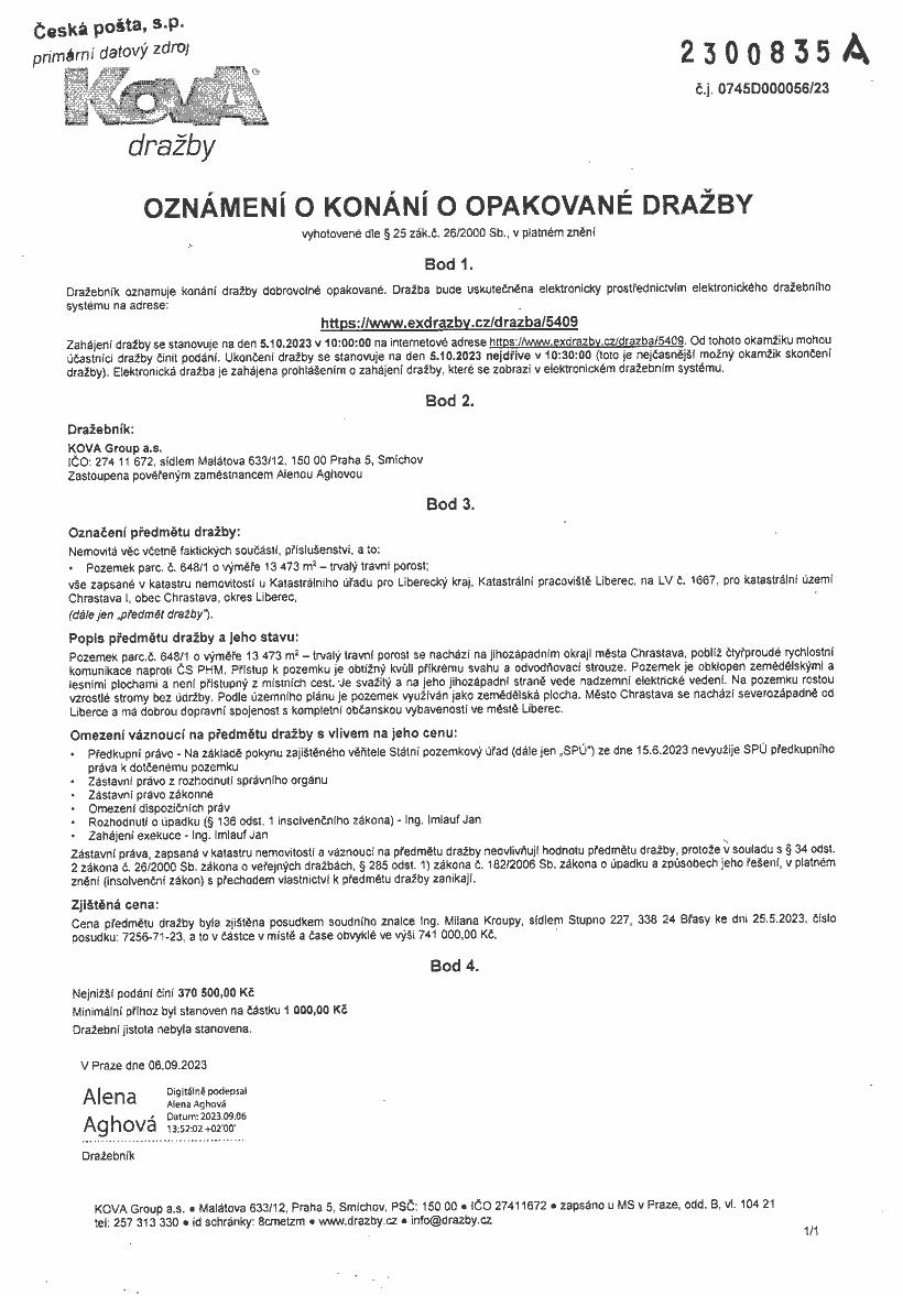 www.centralniadresa.cz – 20.12.2025 15:48 – announcement number 10967807OD01