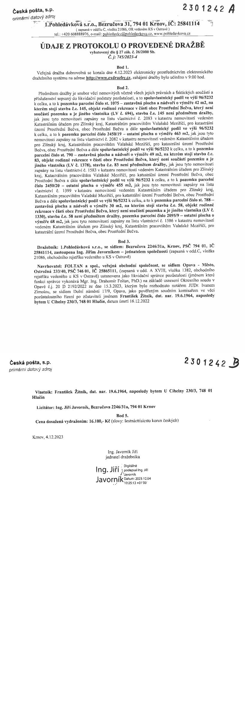 www.centralniadresa.cz – 10.12.2025 04:09 – announcement number 10967827DP04