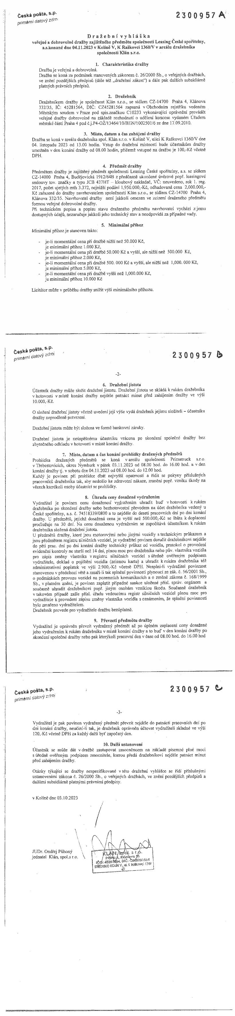 Uveřejněná data na centrální adrese jsou určena pouze pro účely vlastní realizace veřejných dražeb, veřejných nabídek a ostatních veřejných zakázek dle platné legislativy.