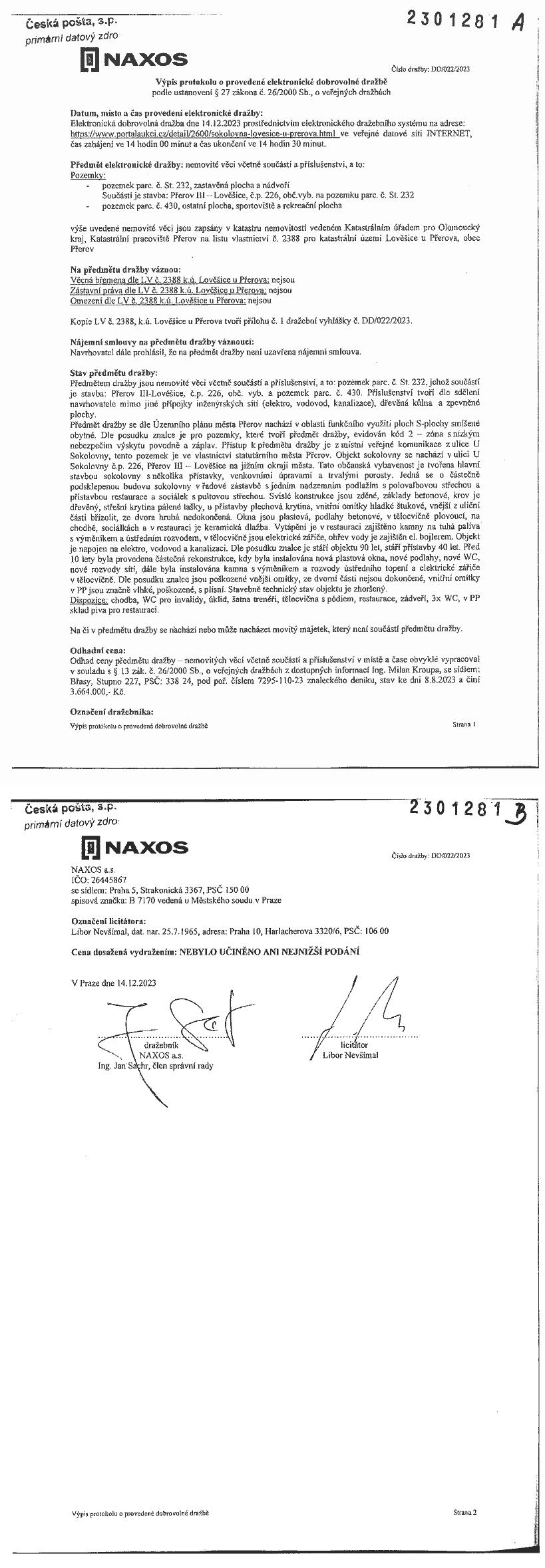 Uveřejněná data na centrální adrese jsou určena pouze pro účely vlastní realizace veřejných dražeb, veřejných nabídek a ostatních veřejných zakázek dle platné legislativy.