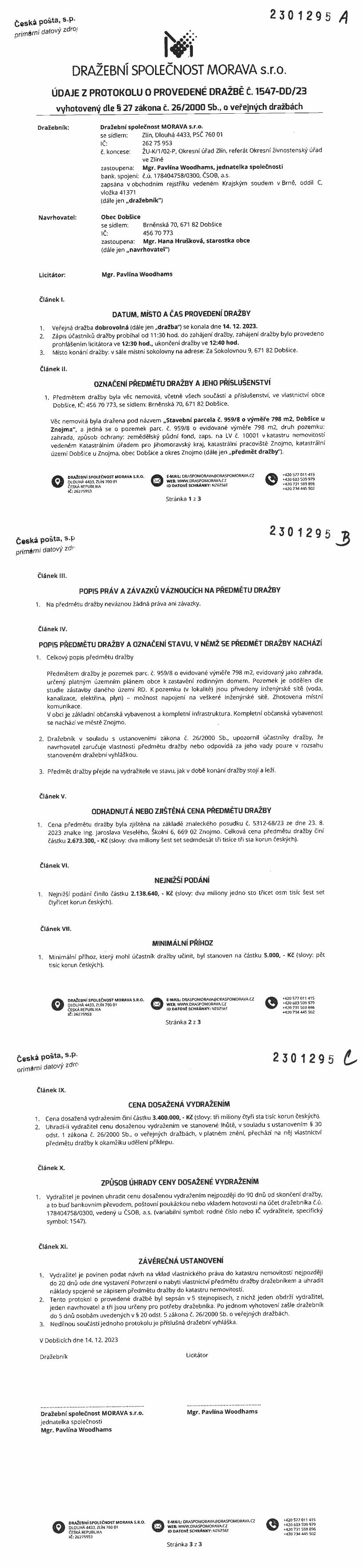 www.centralniadresa.cz – 13.12.2025 08:17 – announcement number 10968134DP01