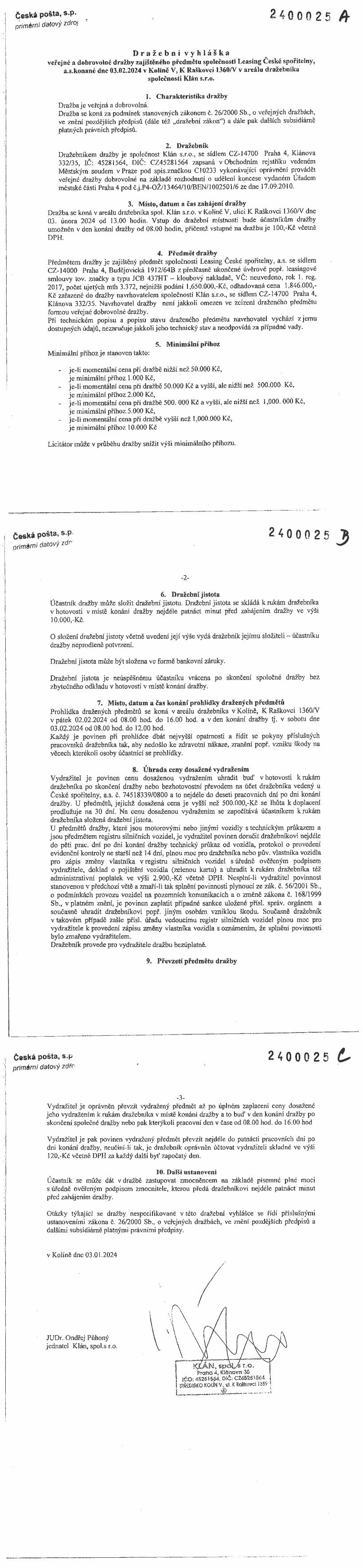 www.centralniadresa.cz – 13.12.2025 07:17 – announcement number 10968235DV01
