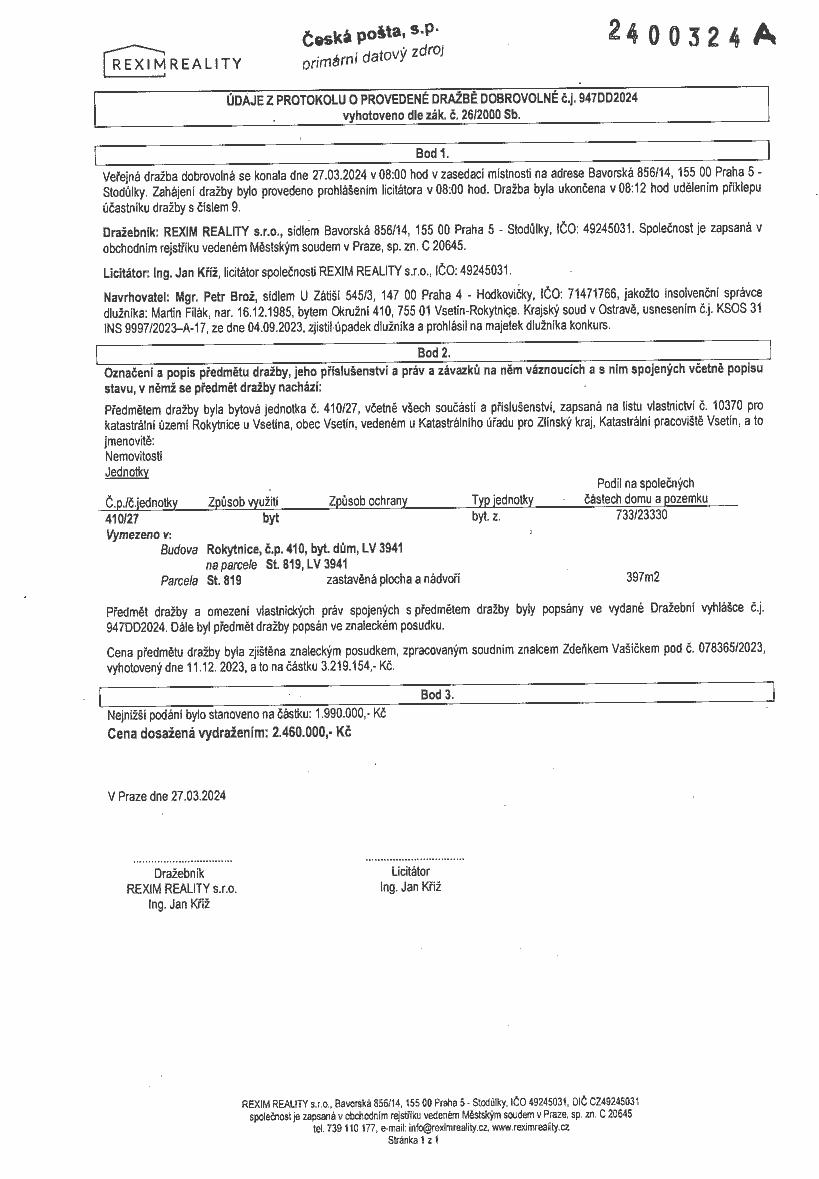 www.centralniadresa.cz – 14.12.2025 09:46 – announcement number 10968333DP01