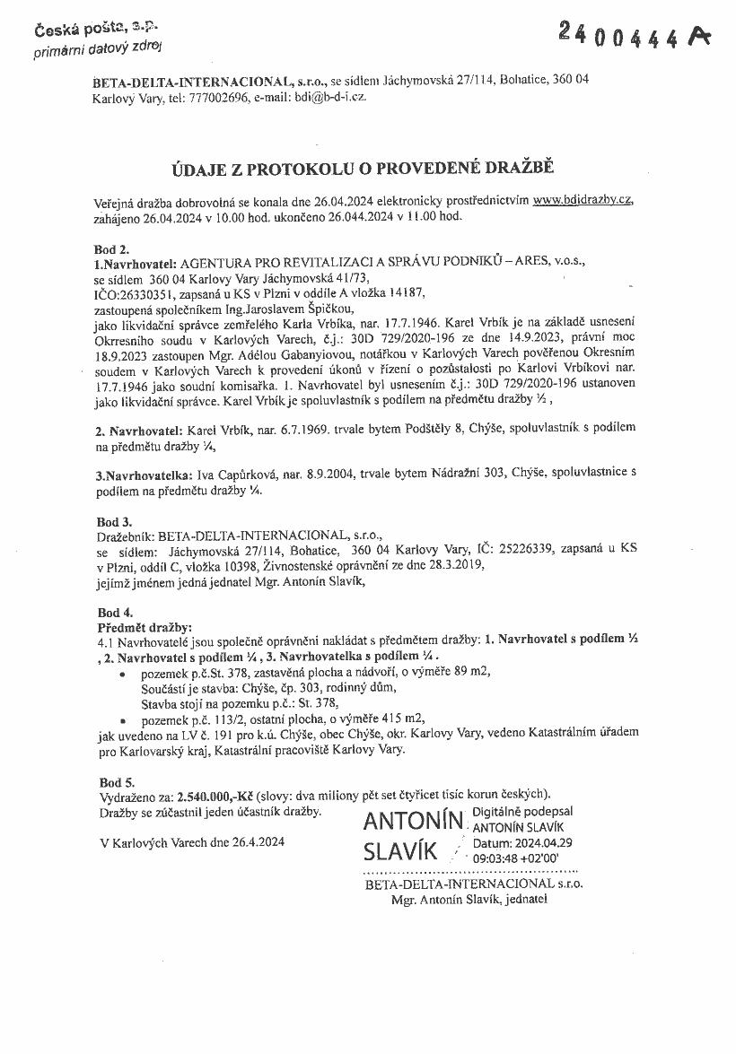 www.centralniadresa.cz – 15.12.2025 10:46 – announcement number 10968417DP01
