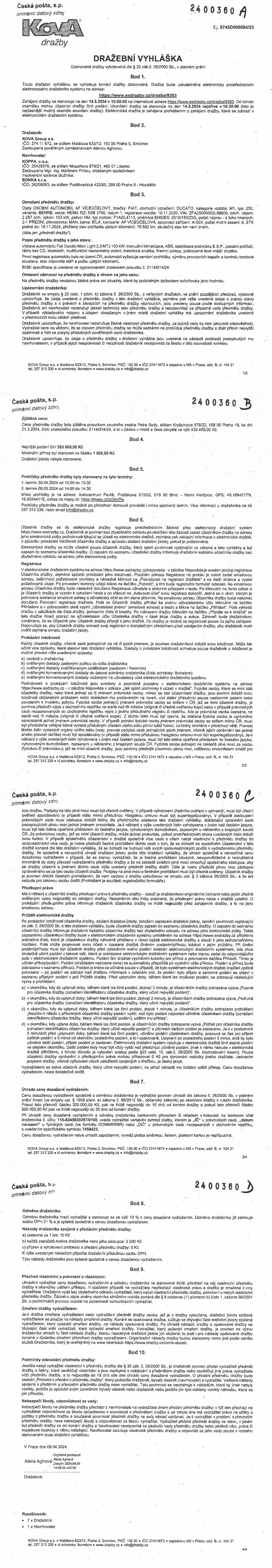 Uveřejněná data na centrální adrese jsou určena pouze pro účely vlastní realizace veřejných dražeb, veřejných nabídek a ostatních veřejných zakázek dle platné legislativy.