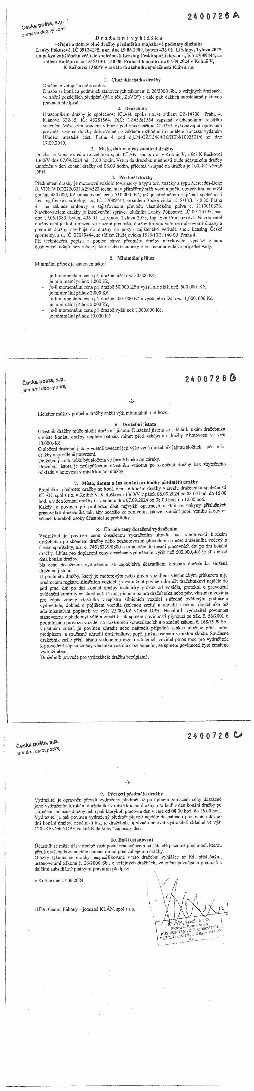 www.centralniadresa.cz – 13.12.2025 07:12 – announcement number 10968692DV01