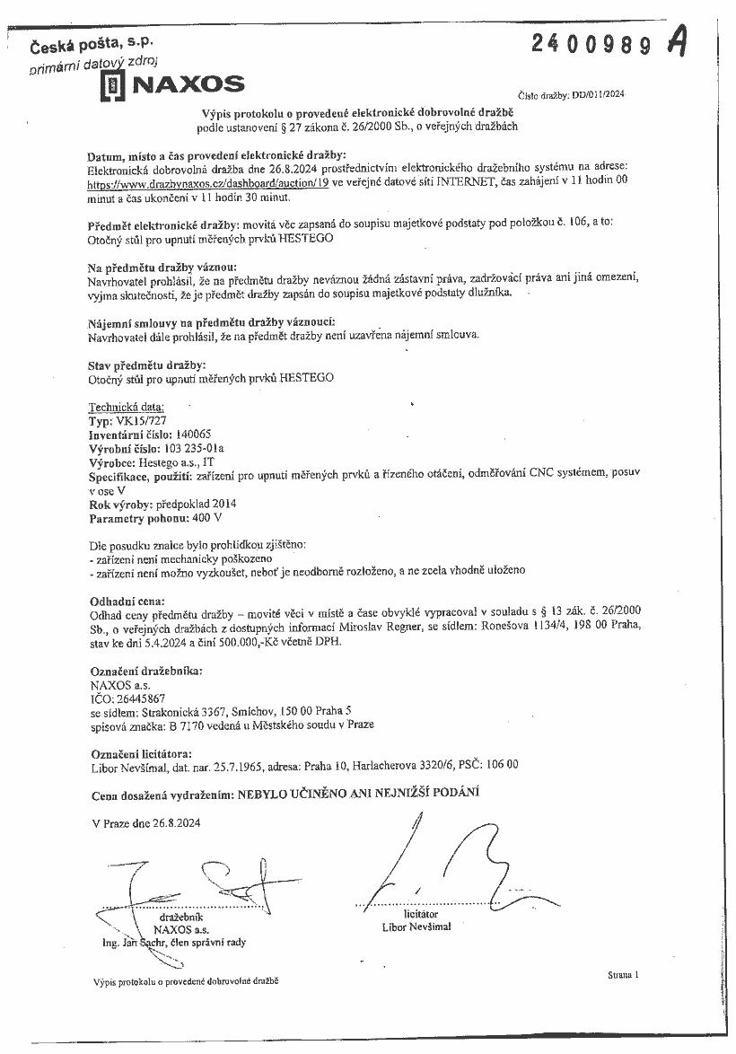 Uveřejněná data na centrální adrese jsou určena pouze pro účely vlastní realizace veřejných dražeb, veřejných nabídek a ostatních veřejných zakázek dle platné legislativy.