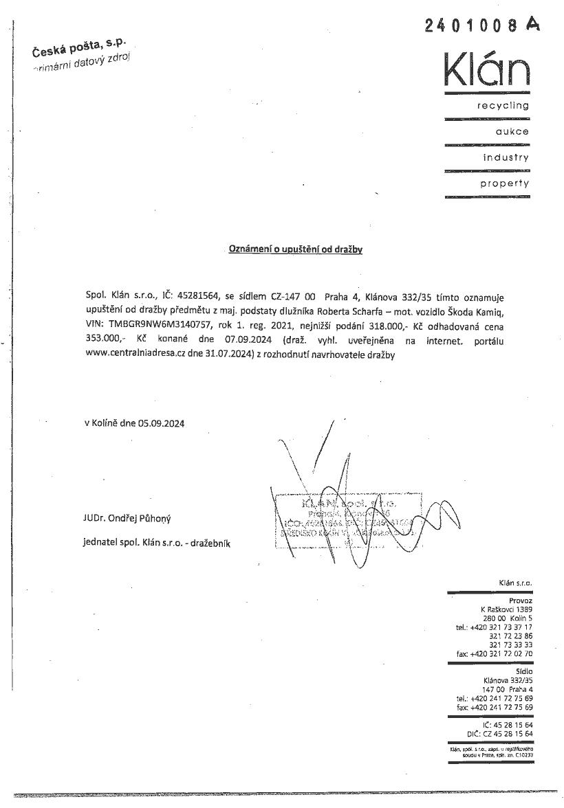 www.centralniadresa.cz – 13.12.2025 07:17 – announcement number 10968795DU01
