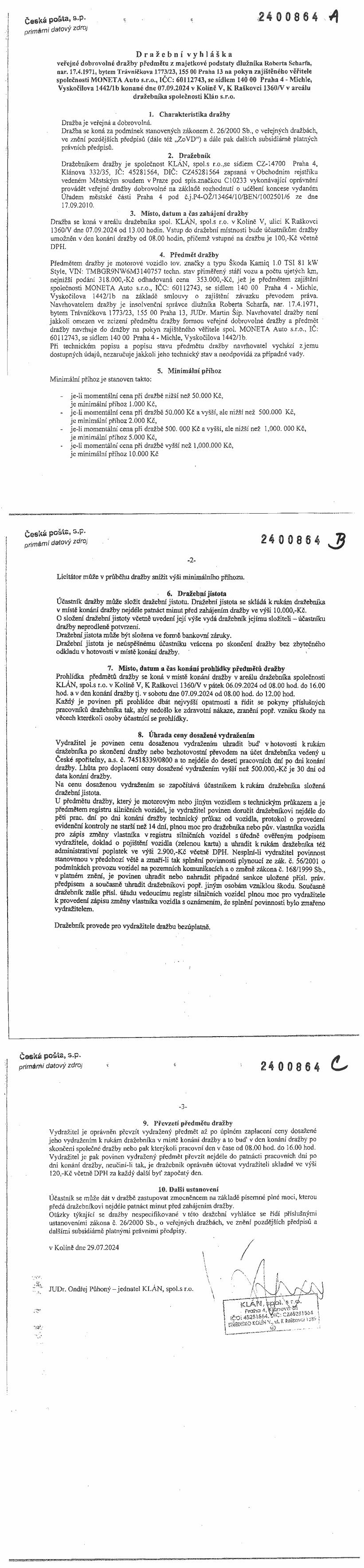 www.centralniadresa.cz – 13.12.2025 07:17 – announcement number 10968795DV01