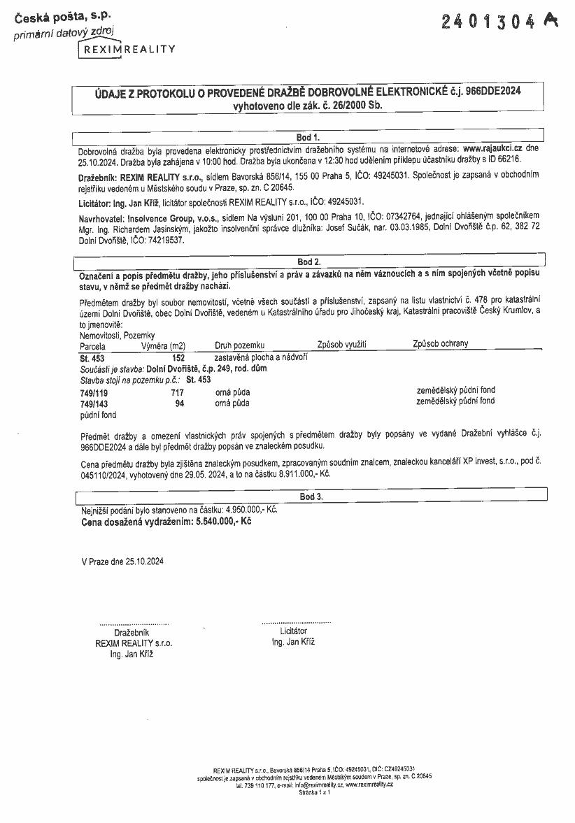 www.centralniadresa.cz – 14.12.2025 09:48 – announcement number 10968841DP01