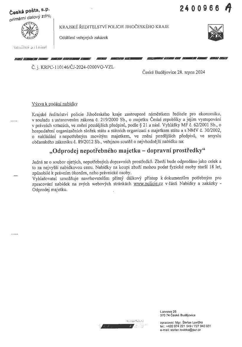 Uveřejněná data na centrální adrese jsou určena pouze pro účely vlastní realizace veřejných dražeb, veřejných nabídek a ostatních veřejných zakázek dle platné legislativy.