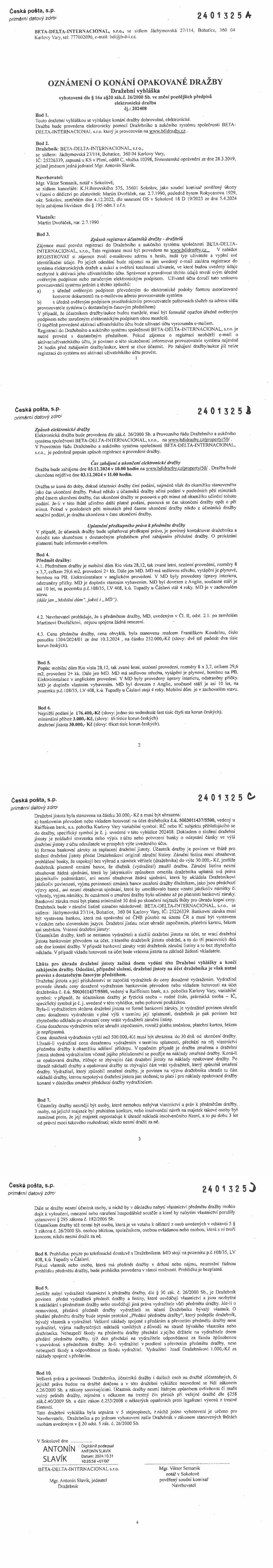 www.centralniadresa.cz – 15.12.2025 01:19 – announcement number 10968876OD01