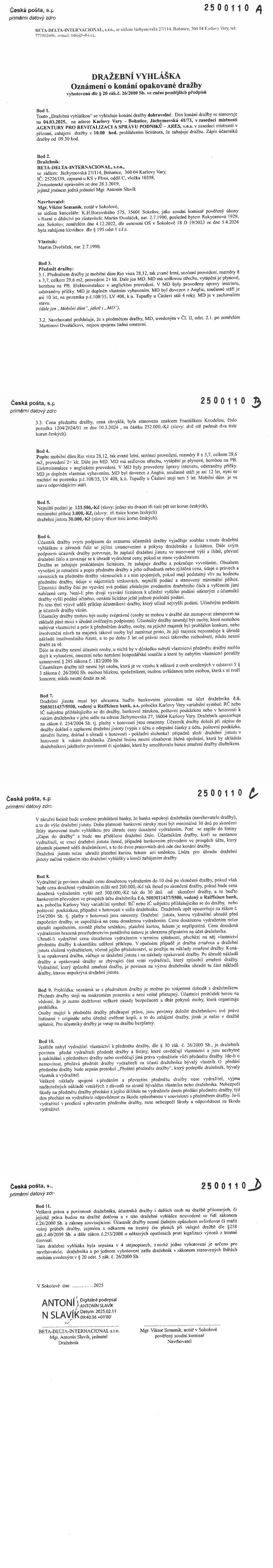 www.centralniadresa.cz – 15.12.2025 01:17 – announcement number 10968876OD02