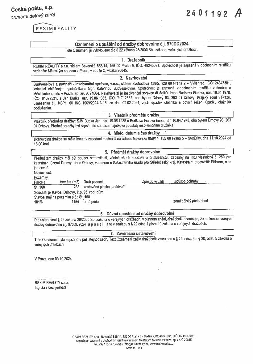 www.centralniadresa.cz – 14.12.2025 09:54 – announcement number 10968882DU01