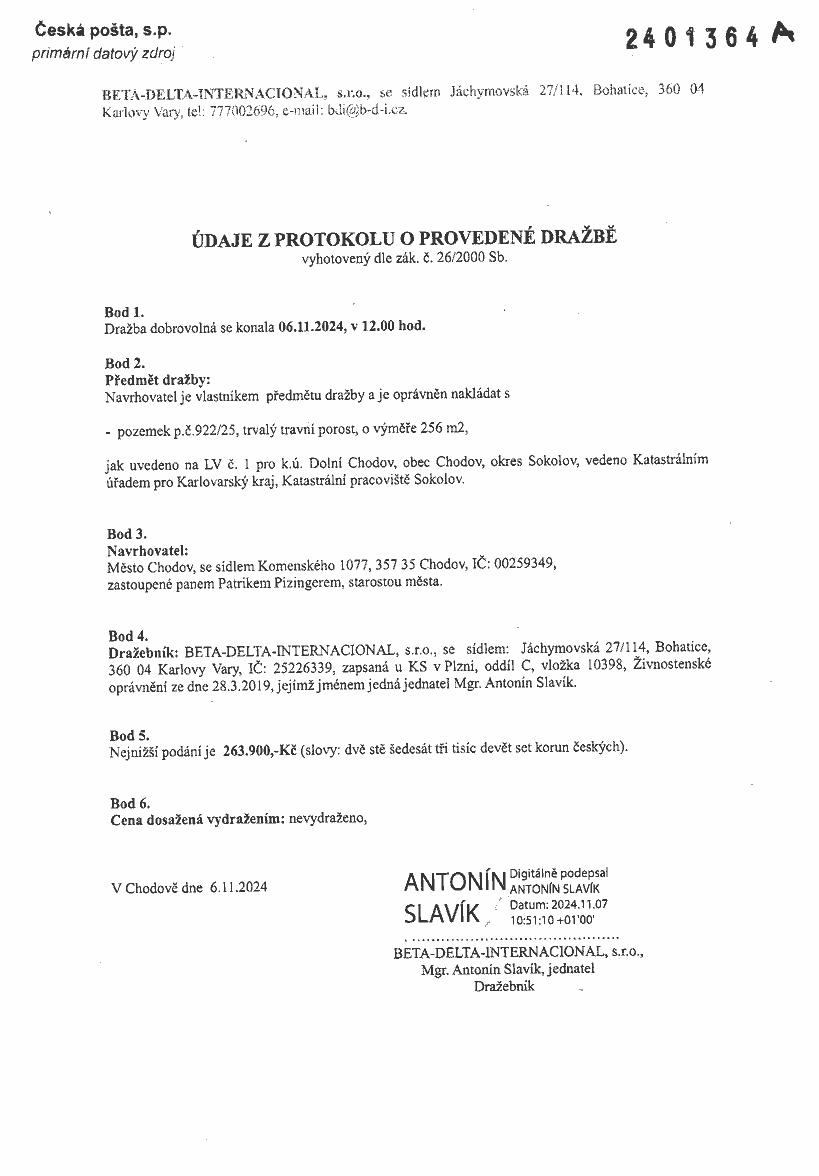 Uveřejněná data na centrální adrese jsou určena pouze pro účely vlastní realizace veřejných dražeb, veřejných nabídek a ostatních veřejných zakázek dle platné legislativy.