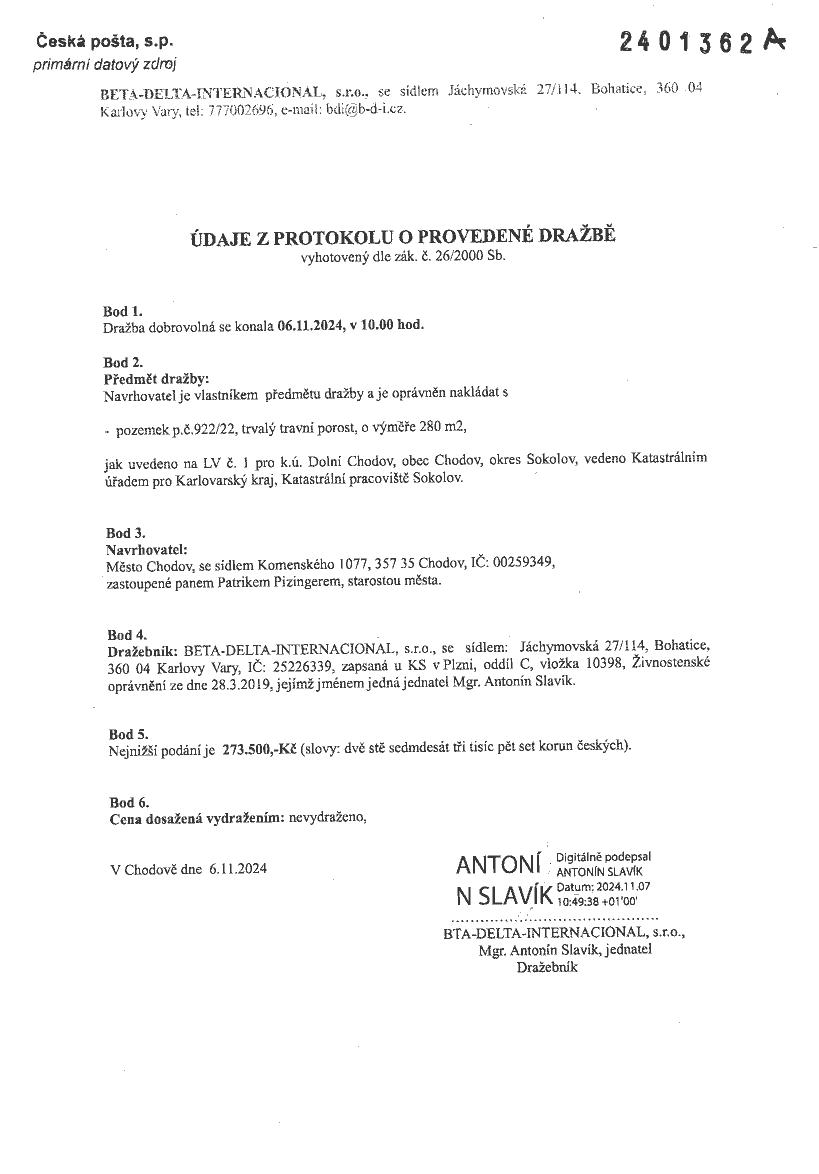 Uveřejněná data na centrální adrese jsou určena pouze pro účely vlastní realizace veřejných dražeb, veřejných nabídek a ostatních veřejných zakázek dle platné legislativy.
