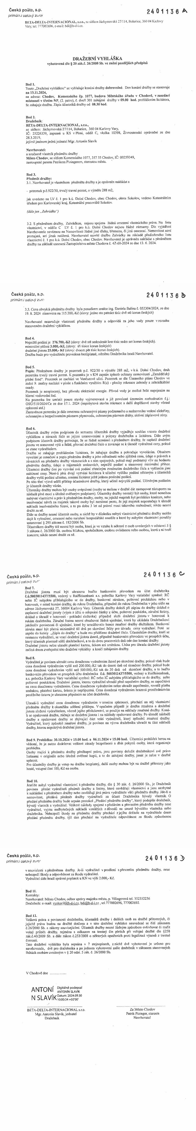 www.centralniadresa.cz – 15.12.2025 01:17 – announcement number 10968969DV01