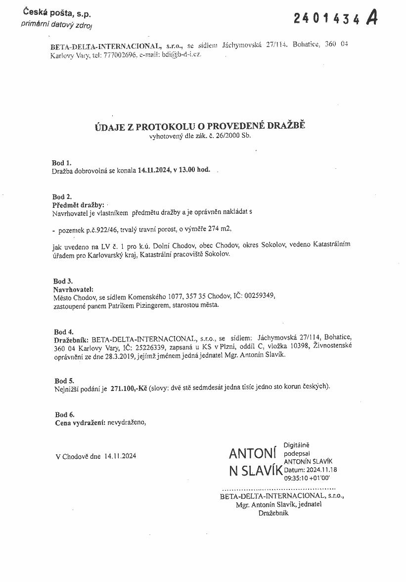 www.centralniadresa.cz – 15.12.2025 01:12 – announcement number 10968972DP01