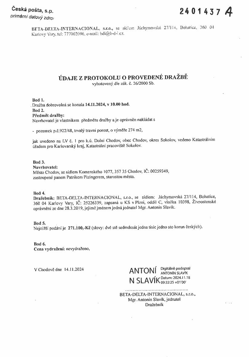 Uveřejněná data na centrální adrese jsou určena pouze pro účely vlastní realizace veřejných dražeb, veřejných nabídek a ostatních veřejných zakázek dle platné legislativy.