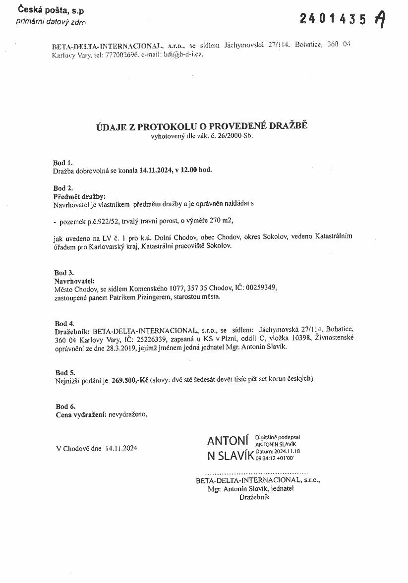 www.centralniadresa.cz – 15.12.2025 01:34 – announcement number 10968976DP01