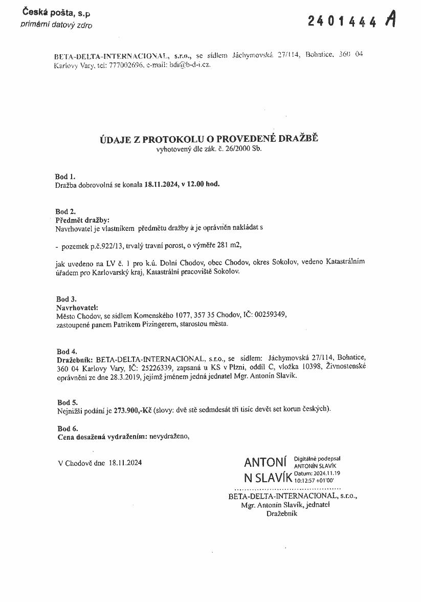 Uveřejněná data na centrální adrese jsou určena pouze pro účely vlastní realizace veřejných dražeb, veřejných nabídek a ostatních veřejných zakázek dle platné legislativy.