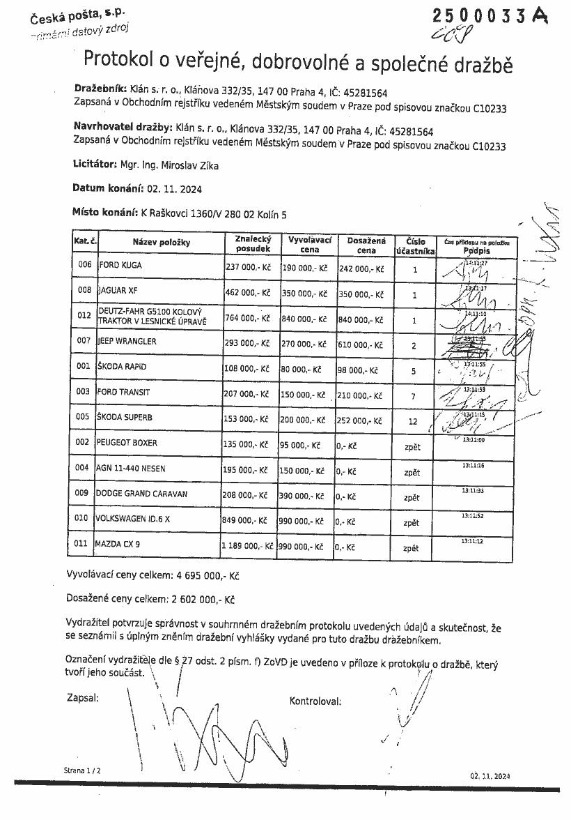 www.centralniadresa.cz – 13.12.2025 07:20 – announcement number 10968999DP01