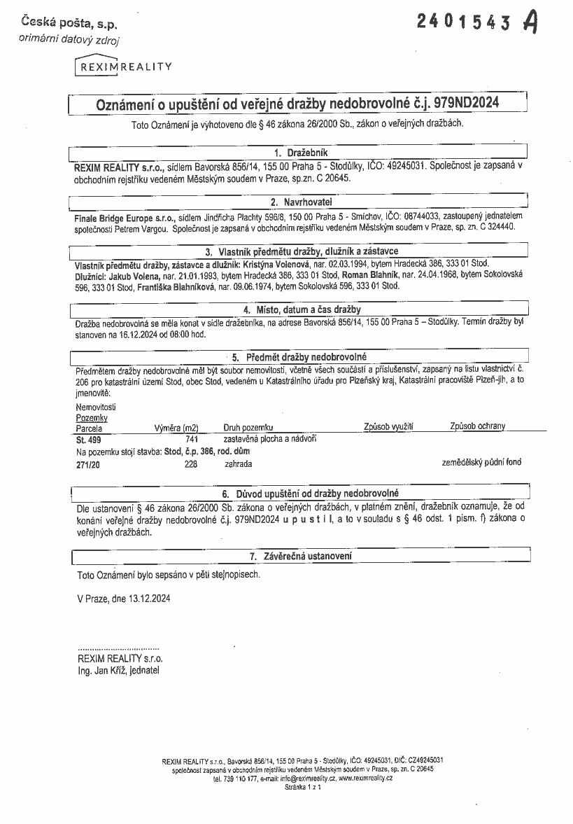 www.centralniadresa.cz – 14.12.2025 09:54 – announcement number 10969022DU01