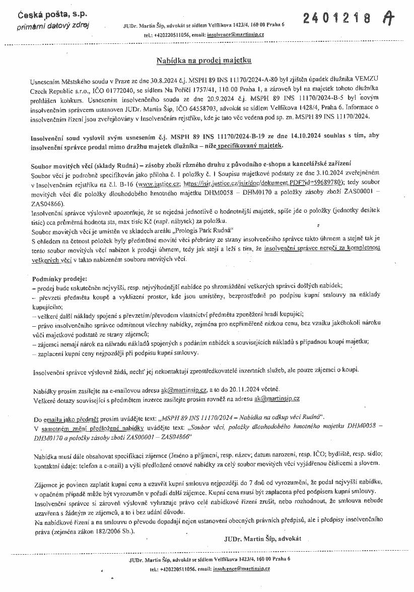 www.centralniadresa.cz – 15.12.2025 20:57 – announcement number 10969028NZ01