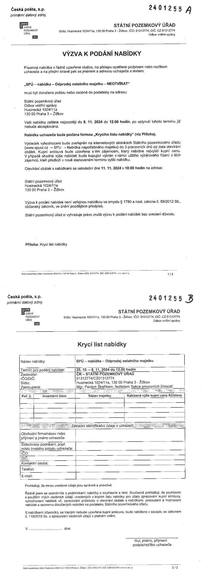 Uveřejněná data na centrální adrese jsou určena pouze pro účely vlastní realizace veřejných dražeb, veřejných nabídek a ostatních veřejných zakázek dle platné legislativy.