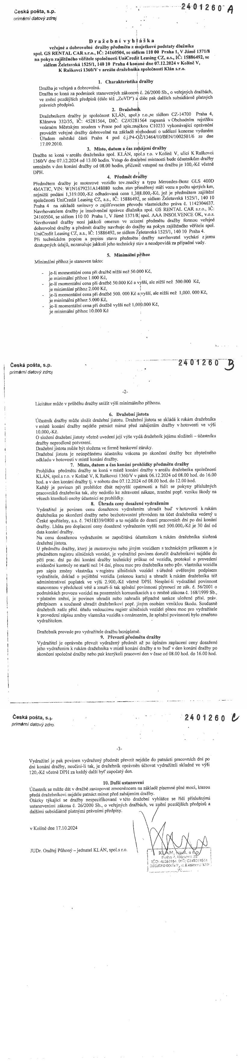 www.centralniadresa.cz – 13.12.2025 07:17 – announcement number 10969041DV01