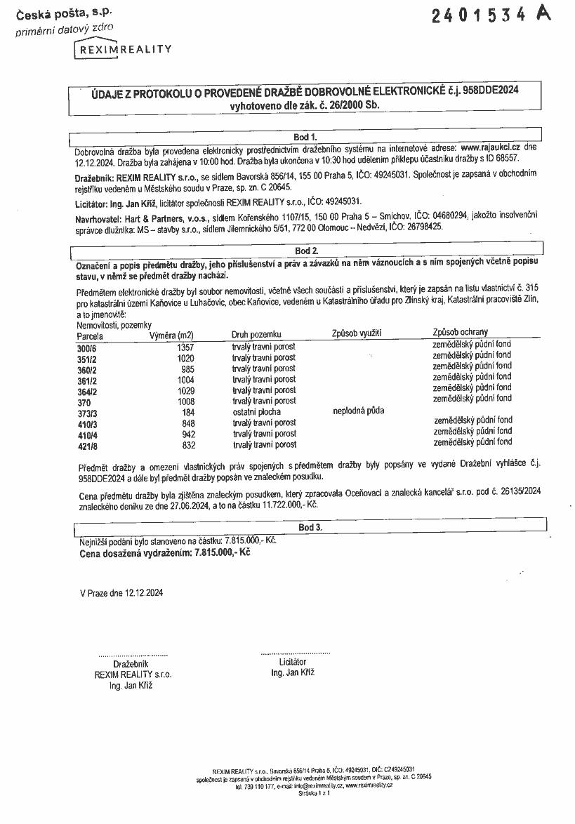 www.centralniadresa.cz – 14.12.2025 09:45 – announcement number 10969062DP01