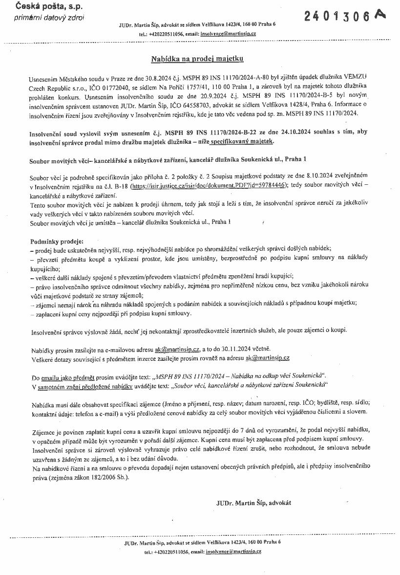 www.centralniadresa.cz – 15.12.2025 20:24 – announcement number 10969081NZ01