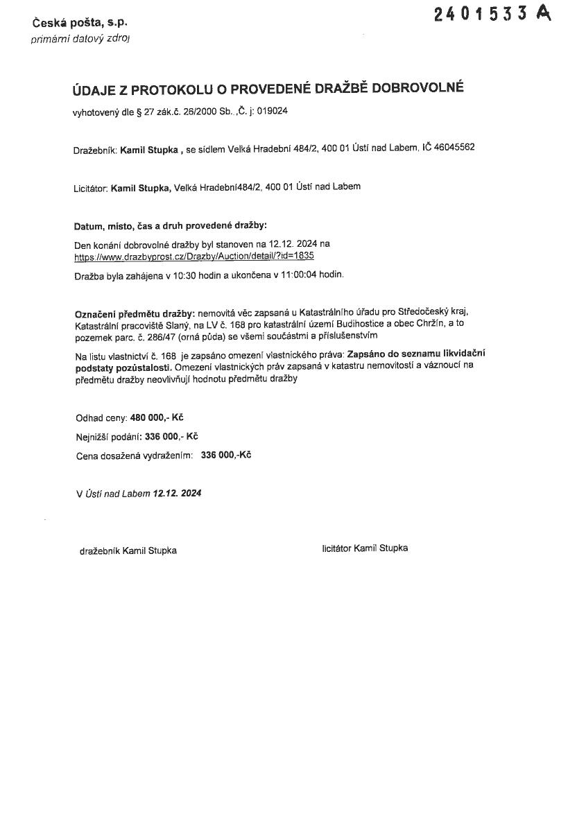 www.centralniadresa.cz – 07.12.2025 19:21 – announcement number 10969116DP01