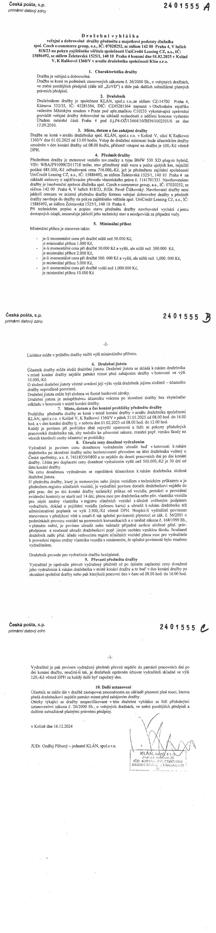 www.centralniadresa.cz – 11.12.2025 15:12 – announcement number 10969237DV01