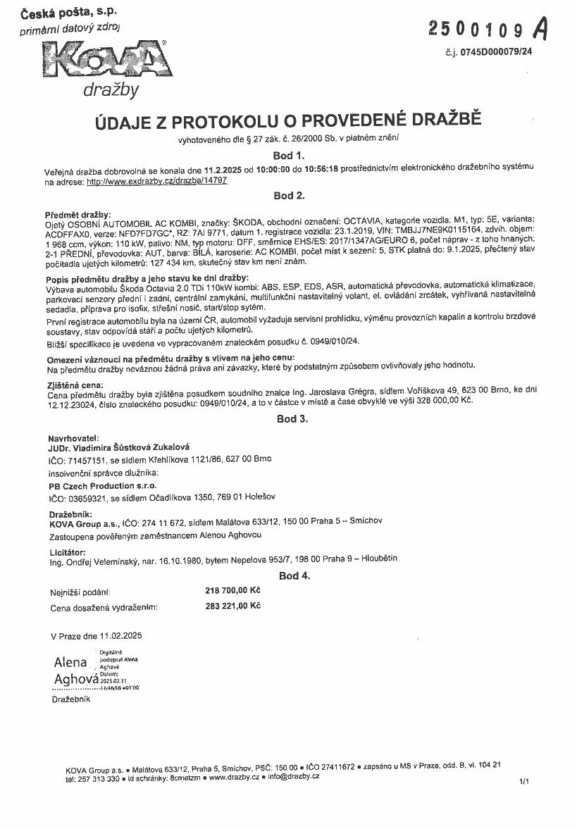 www.centralniadresa.cz – 19.12.2025 02:12 – announcement number 10969290DP01