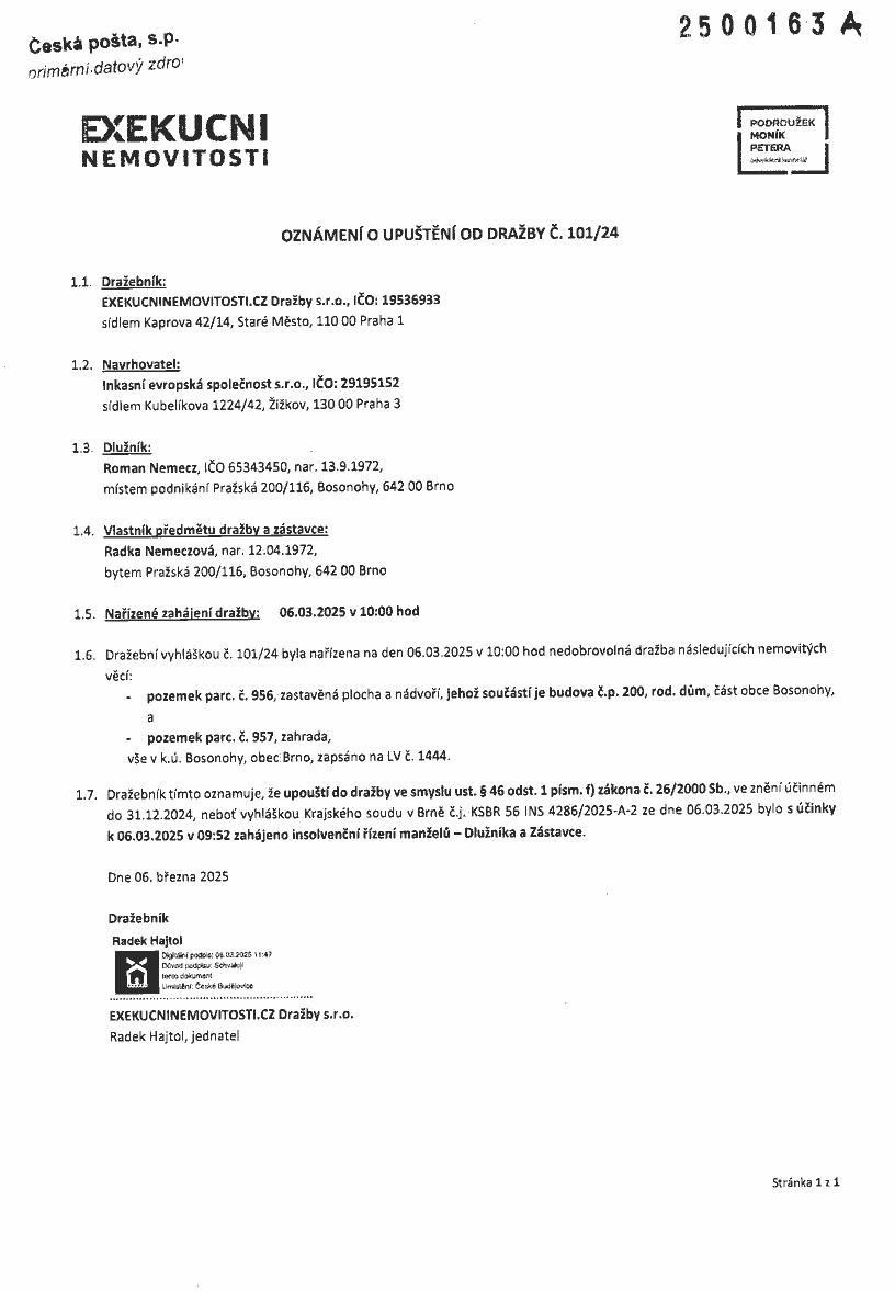 www.centralniadresa.cz – 11.12.2025 15:45 – announcement number 10969291DU01
